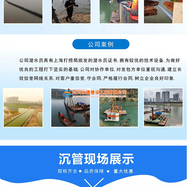 四川水建【136-2905-5556 張工】專業(yè)承接沉管安裝公司,沉管工程,水下管道鋪設(shè),取水頭安裝,取水頭施工,水下取水頭工程的沉管施工單位公司,全天候?yàn)槟?wù)。