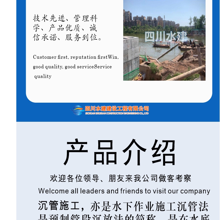 四川水建【136-2905-5556 張工】專業承接沉管安裝公司,沉管工程,水下管道鋪設,取水頭安裝,取水頭施工,水下取水頭工程的沉管施工單位公司,全天候為您服務。